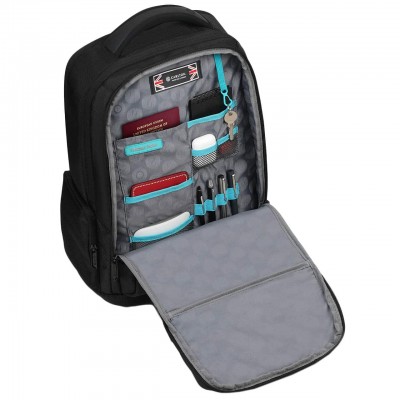 | سایر توضیحات | Air Cushion System دارای آویز کلید دارای فضای اسفنجی طبی در پشت جهت جریان هوا و جلوگیری از تعریق و خستگی دارای محفظه نوشت افزار زیپ ها تماما ریورز و ضد آب فضاها تماما مخصوص و پارتیشن بندی شده جهت جا گیری آسان وسایل قابلیت حمل روی دسته چمدان محفظه نگهداری پاسپورت |